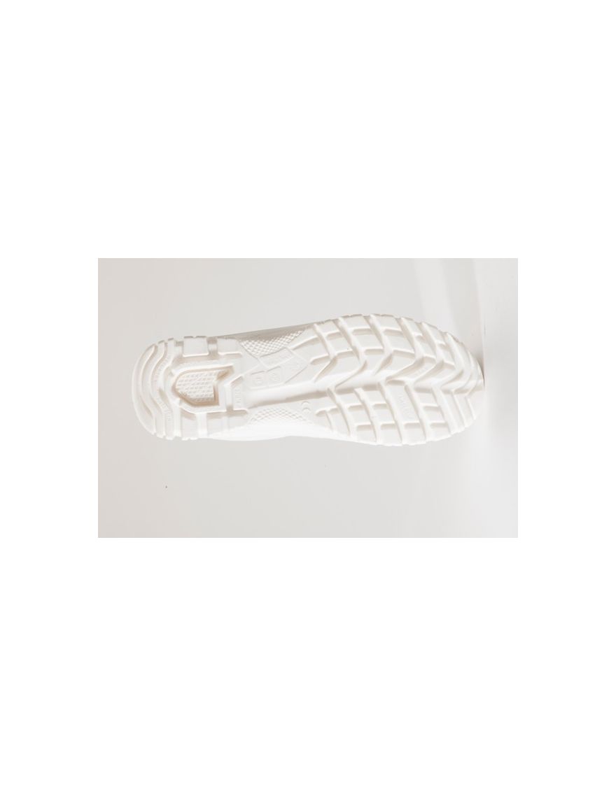 La tige en microfibre synthétique hydrofuge est très résistante aux fluides et aux attaques bactériennes. La semelle en polyuréthane bi-densité est particulièrement résistante à l'abrasion.