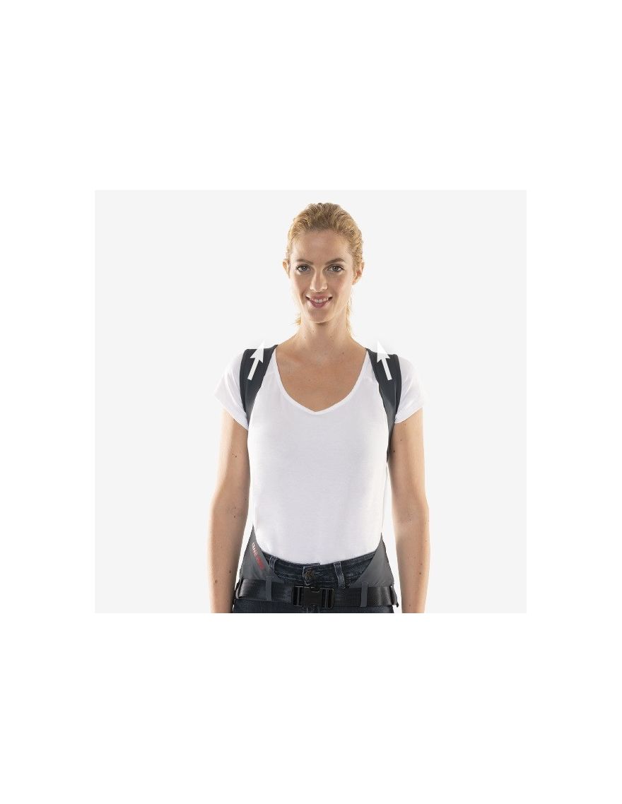 - une double action : des tenseurs sur les lombaires et les épaules pour un redressement naturel